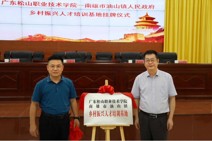 7月22日上午10点,广东松山职业技术学院乡村振兴人才培训基地揭牌仪式在南雄市油山镇举行,松山学院党委书记方迎生与油山镇党委书记李祥宏共同为基地揭牌。