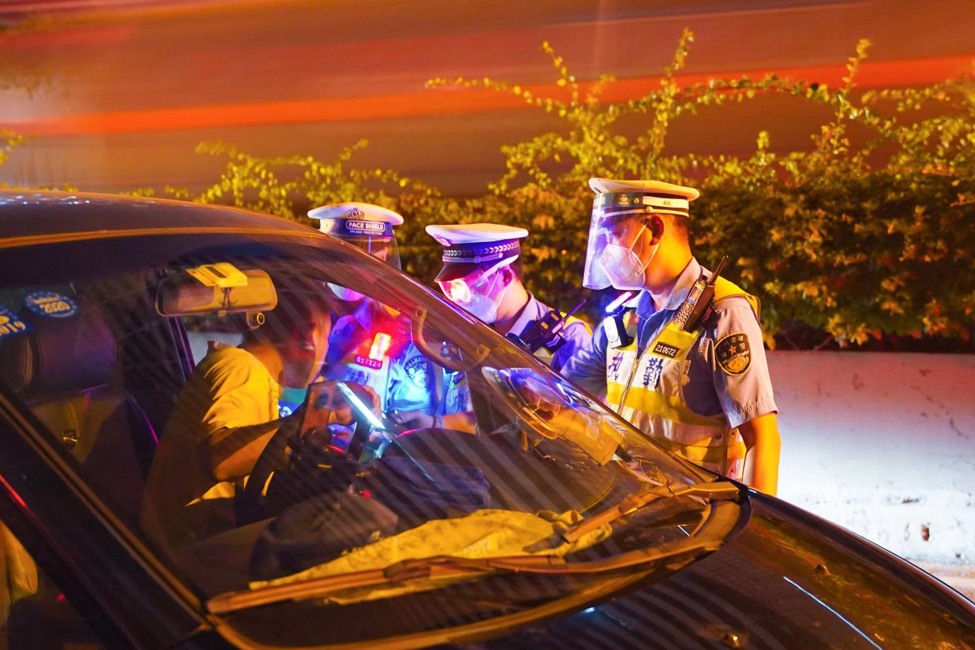 7月22日晚,广州交警共出动近1000名警力,严查涉酒违法行为。通讯员供图