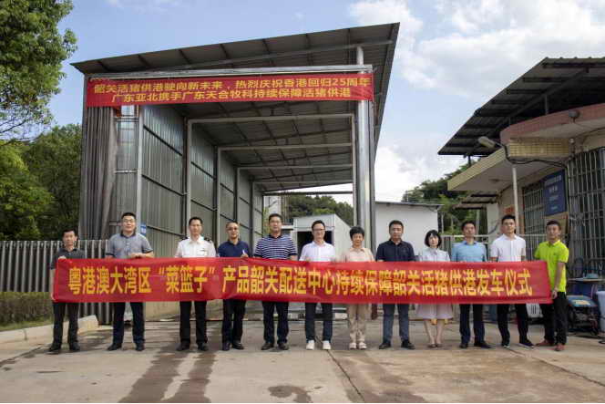 韶关市农业农村局、广州海关所属韶关海关、韶关市商务局、曲江区等相关领导及广东亚北农副产品有限公司、广东天合牧科实业股份有限公司负责人出席此次韶关活猪供港发车仪式。