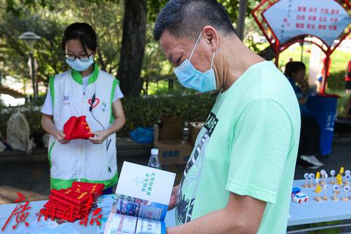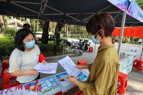 本次活动由越秀区委政法委主办,现场设置平安主题志愿服务集市,布置防范养老诈骗、来穗人员心理健康服务、“粤居码”推广、扫黄打非等主题宣传摊位,有关工作人员现场向市民派发主题宣传单张,介绍识诈反诈技巧、心理健康、“粤居码”使用、识别非法出版物等方面的小知识。