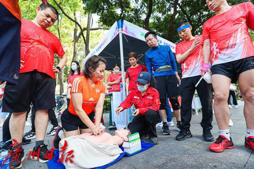 越秀区委政法委、越秀区平安促进会与该队伍充分沟通交流后,邀请公安部门对麓湖跑团的跑友开展专业化群防共治培训,以趣缘为纽带,发掘并培育形成“越安-麓湖跑团”品牌队伍。