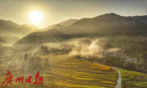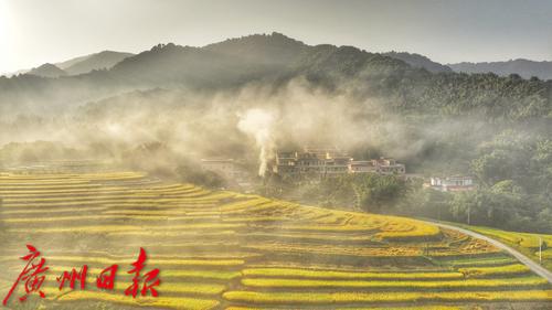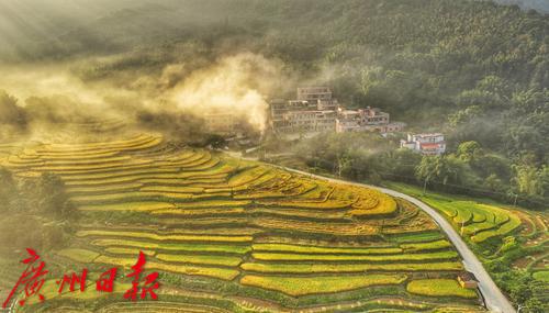 广州最美的梯田在清晨的云雾中显现,一片片金灿灿的稻田连在一起,高处俯瞰犹如一座座金矿大山。阳光普照之处都如诗如画!