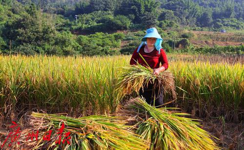 近日,位于广州从化北部的吕田镇新联村唐屋社,110亩的稻田是广州最美的梯田,被堪称为广州“龙脊”,目前正进入夏收季节。