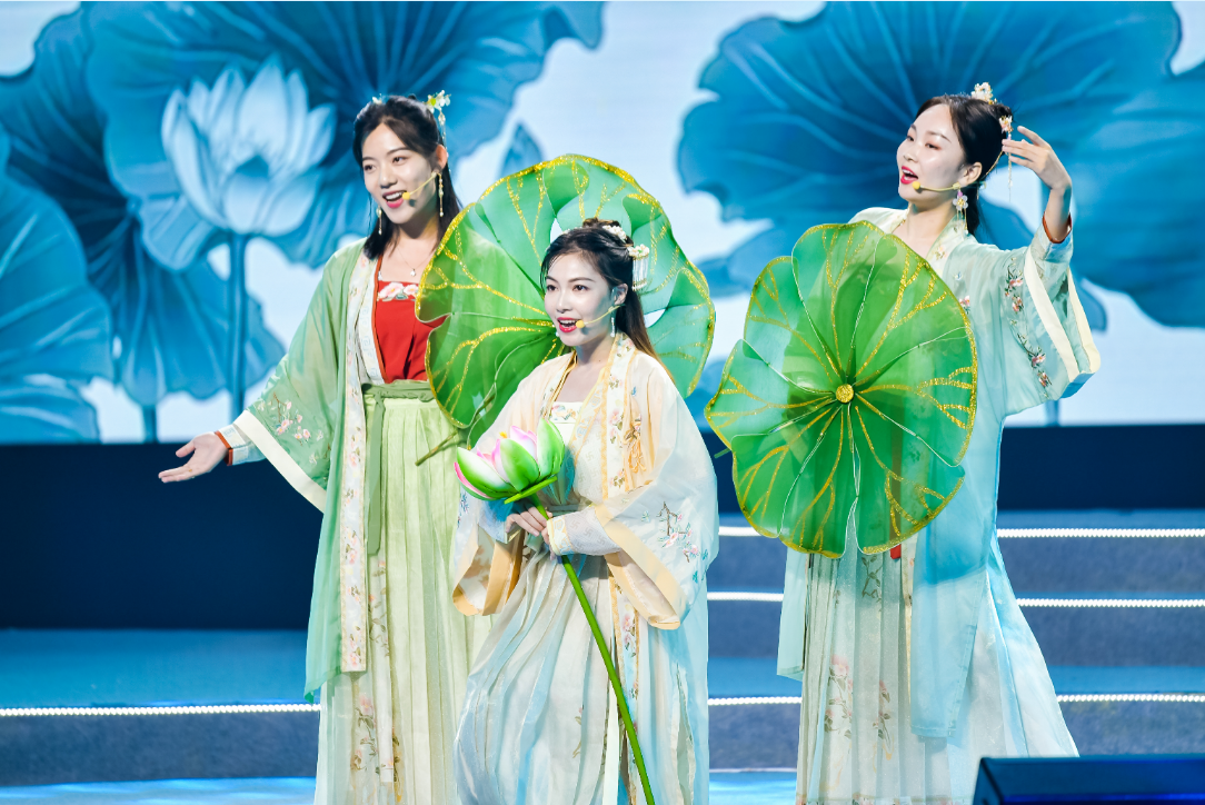 “古《诗》三百五篇,皆可声之琴瑟。咏其辞,而以琴瑟和之,所谓弦歌也。”从《诗经》《楚辞》到唐诗宋词元曲,诗歌自诞生以来便与音乐结下不解之缘。7月23号正好是大暑,由原创音乐人梁山山和孙小佳演唱《岭南诗篇·24节气之大暑》在活动现场首次唱响。本首歌是二十四节气系列主题歌曲的大暑篇,在每个传统节气,从一首经典诗词中演绎一首原创歌曲,唱响岭南的二十四节气诗篇,带领观众领略古人的诗意与浪漫。