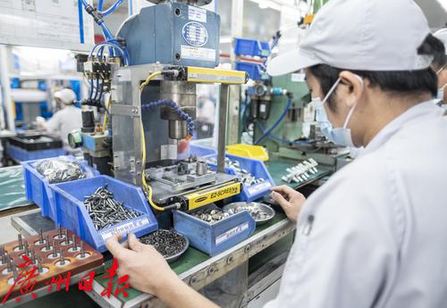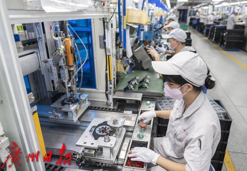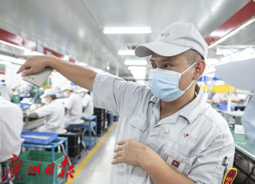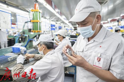 在广州维高集团有限公司的2R电装科仪表生产车间,福利员工们有条不紊工作
