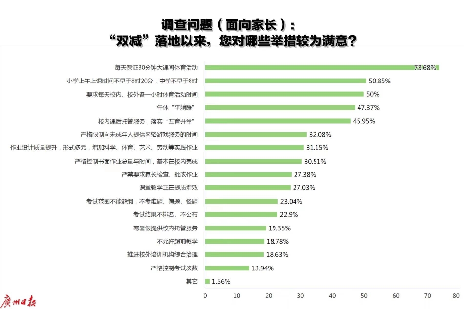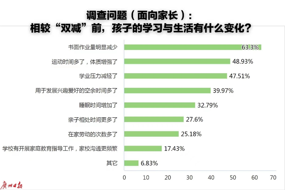 为进一步了解“双减”之后,广州学生学习与生活的具体变化以及家长、老师的看法,近日,广州日报求学指南工作室开展了线上问卷调查,共收到1646份有效答卷。在调查过程中,不少家长和老师分享了他们对“双减”的建议与困惑。