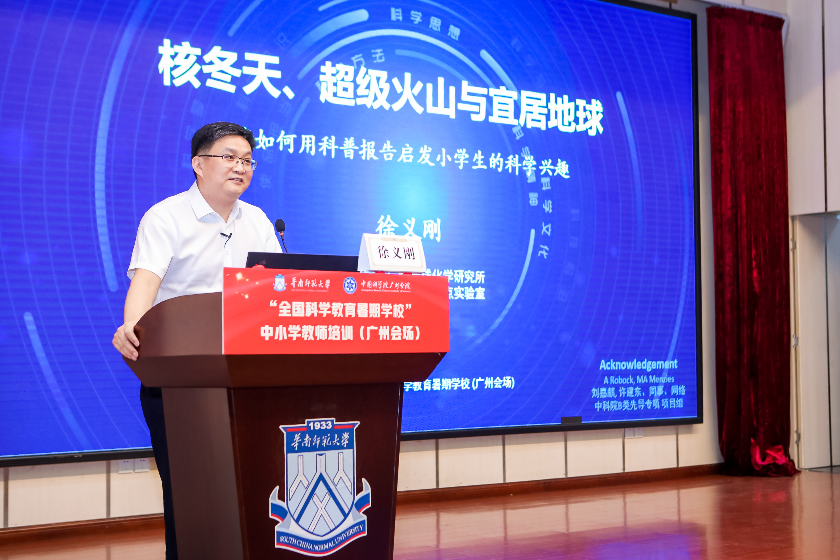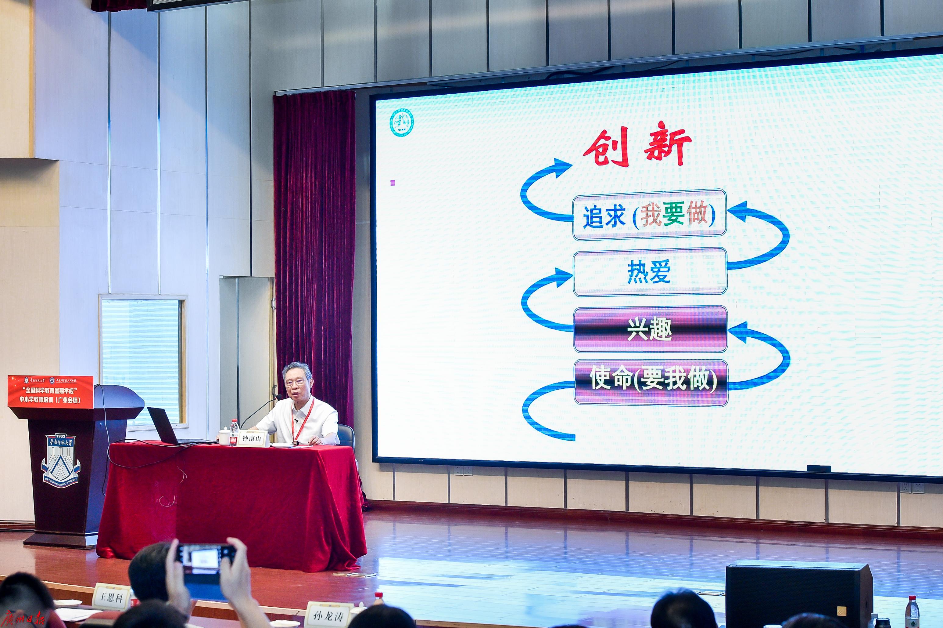 7月25日,华南师范大学举行“全国科学教育暑期学校”中小学教师培训(广州会场)开班典礼。共和国勋章获得者、中国工程院院士钟南山,中国科学院广州地球化学研究所研究员、中国科学院院士徐义刚等多位科学家,为线上线下的全国中小学教师直播授课。