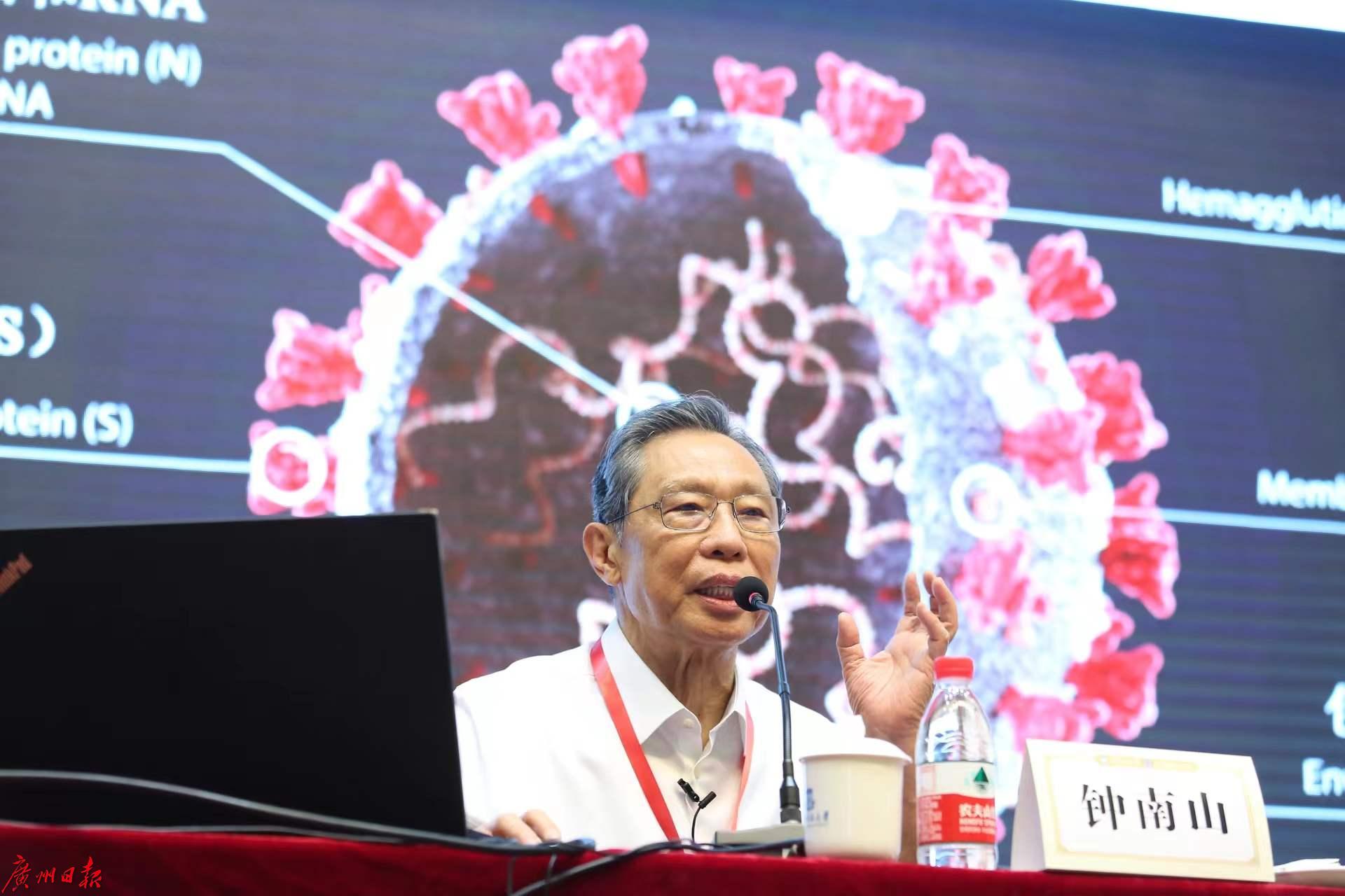 钟南山围绕“我国现阶段教师的科学培养——创新”这个主题,做了专题讲座。他回顾中国抗击疫情的过程时表示,中国始终坚持“生命至上”的理念,依靠科学抗击疫情,比如首次分离出新冠病毒,首次进行测序,首次研发检测技术,及时揭示新冠“人传人”及快速传播的特征,及时研发针对新冠病毒感染的疫苗,及时推进对新冠病毒传播进行社区创新的科学管理。他说,在抗击疫情中,我国的许多做法都体现了创新。