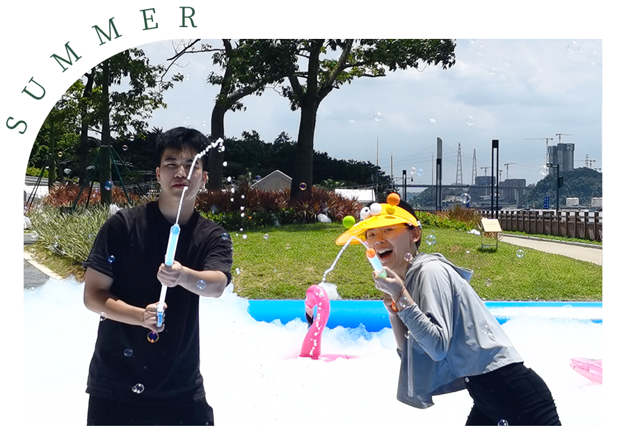 在岭南印象园,举行梦幻泡泡节活动,酷爽泡泡派对等你来“冒”泡!萌娃家庭、三五好友齐上阵,在漫天“洁白雪花”的覆盖下,尽情感受疯狂的泡泡浴,还可以和小伙伴来一场激情水枪大战。