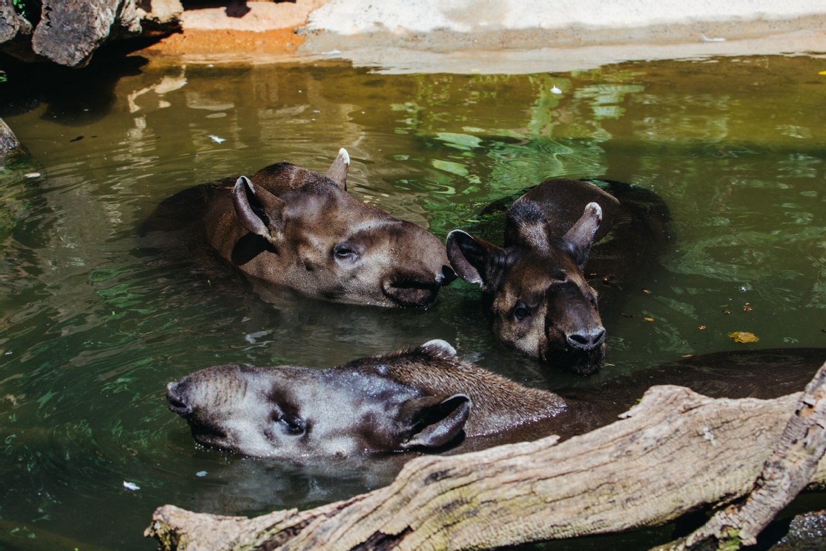 Brazilian Tapirs stay in water to cool down in hot weather at Chimelong Safari Park in Guangzhou, Guangdong province, on July 22, 2022. [Photo by Deng Yongyi/For chinadaily.com.cn]