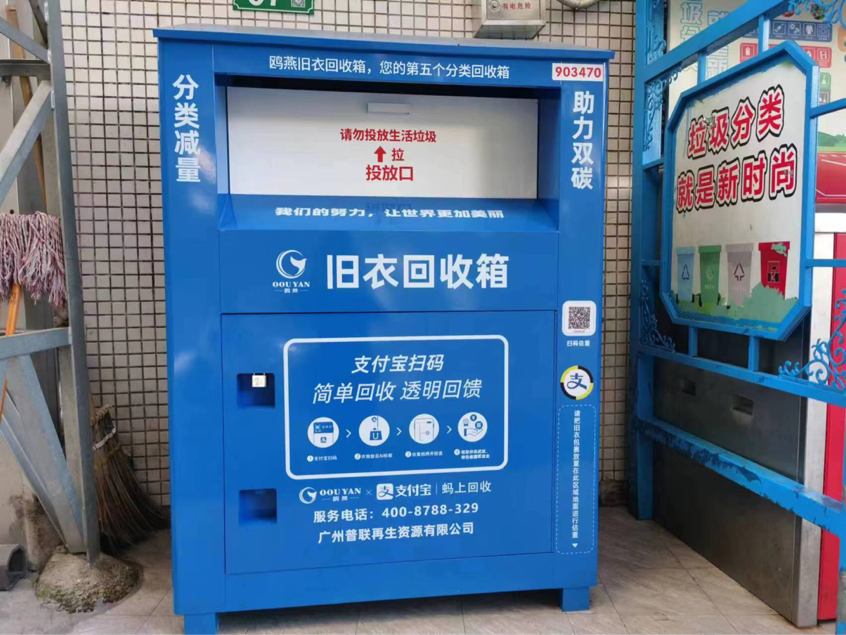 为落实好垃圾分类工作,基层街道一直积极探索如何实现精准细分促进垃圾减量化、资源化。去年开始,钟村街联合广州普联再生资源有限公司在辖内共设置了134个AI旧衣回收箱。