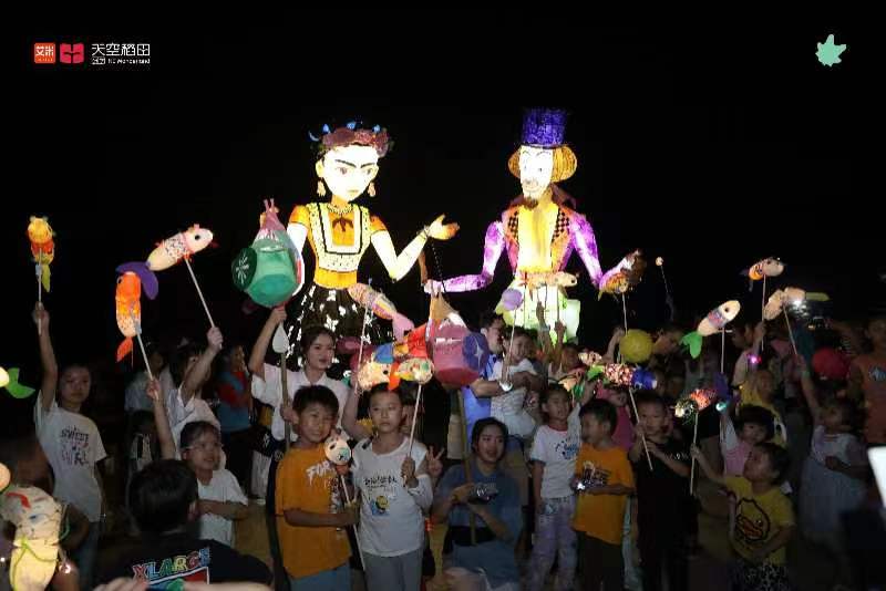 这场亲子艺术派对包含丰富的活动。其中,“艾米天空稻田研学”以原生态农业稻田为教学场所,以手作、收割及摄影等互动体验式项目为载体,了解一粒米的前世今生,感受传统稻作文化与现代科技的碰撞。“艺术活动体验”是一个亲子共同参与的艺术活动,让孩子用日常可及的材料创造一条活灵活现的发光鱼偶,晚上共赴大偶稻田夜幕巡游。“田间儿童剧场”里有一出吾悦儿童戏剧的新作首演,作品以大米的生长线,讲述小农夫牛么么和小稻米在成长过程中相互支持与启发的故事。“艺术装置共创”则在田野里就地取材创作一个“稻田”共创艺术装置,用诗歌念诵大自然的美好。“稻田里的读诗会”徜徉于自然的怀抱念诵诗歌,让大家听见诗歌原本的样子。“田野边的露营”在稻田里、在阳光搭建露营帐篷,体会田野边的露营趣味。“稻田游戏体验”在田野边开辟稻田游戏体验区,玩转艾米稻香露营限定小游戏,自然撒欢,解锁快乐密码。