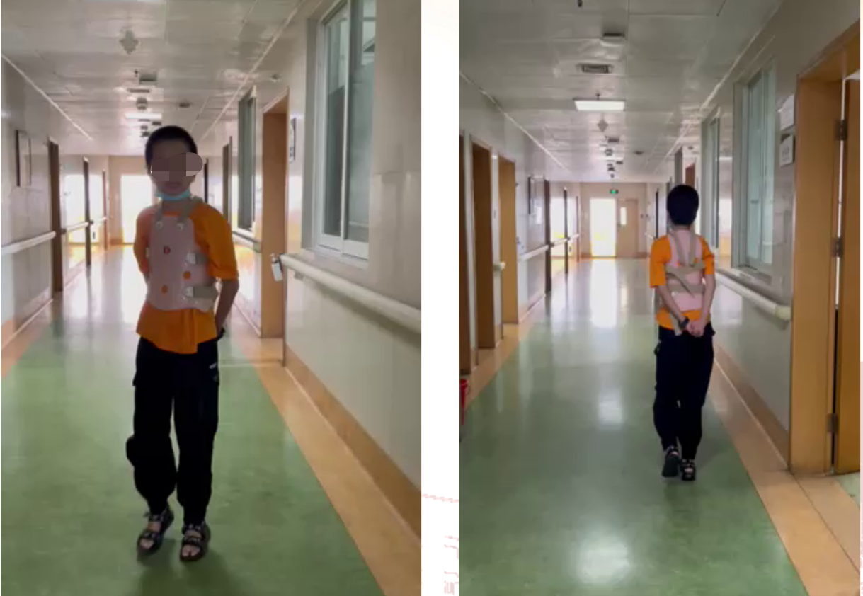 术后侧弯得到明显矫正,小林身高增长了8厘米。日前,小林的父亲在连线接受采访时告诉记者,之前因为脊柱侧弯压住了肺部,导致咳嗽,手术后呼吸正常、没有咳了,腰直了,走路也好走了。