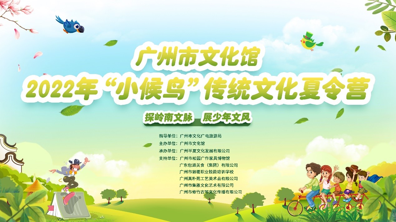 “探岭南文脉,展岭南文风”。2022年7月26日,由广州市文化广电旅游体育局指导,广州市文化馆主办、广州半夏文化发展有限公司承办的2022年广州市文化馆“小候鸟”传统文化夏令营正式开营。夏令营为期5天,将为“小候鸟”们带来丰富精彩的传统文化体验,带领他们感受广州传统文化的独特魅力。