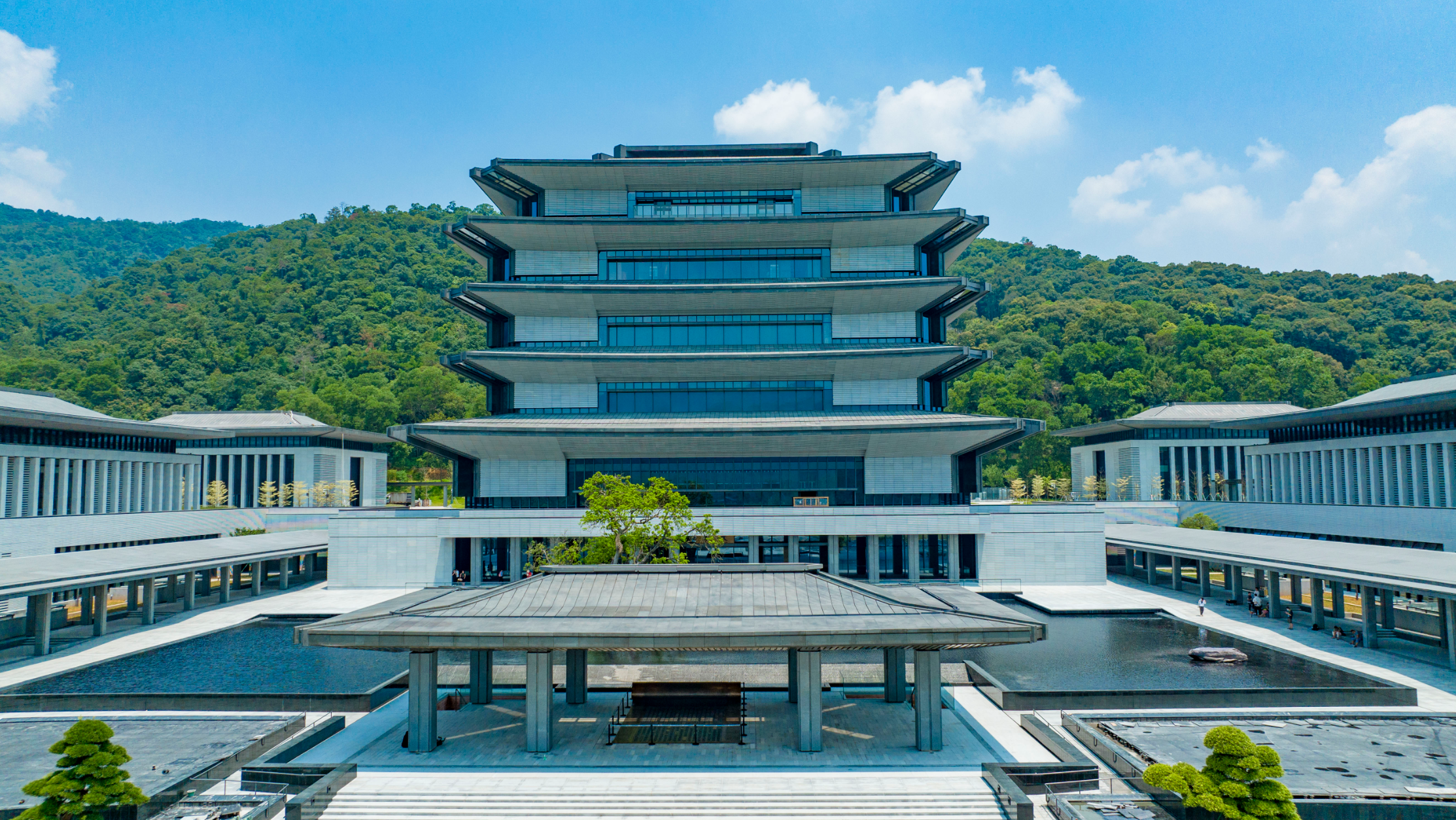 广州国家版本馆坐落于从化区美丽的凤凰山麓、流溪河畔。