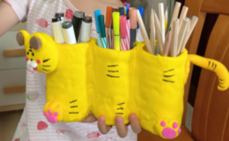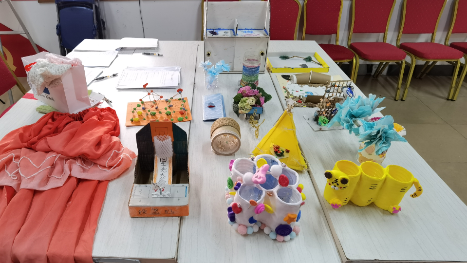 用鞋盒改造成的双层推拉门收纳盒、用纸皮作画、废旧报纸变成钱包、环保可爱的老虎笔筒……为了更好地发挥废旧物品的价值,大家的创意可谓层出不穷,利用废旧矿泉水瓶、废纸皮、旧布料、废弃装饰物、木棍、报纸等,制作出了各种精美的手工作品,有的以精美取胜,有的以实用为主,还有的作品充满了童趣。