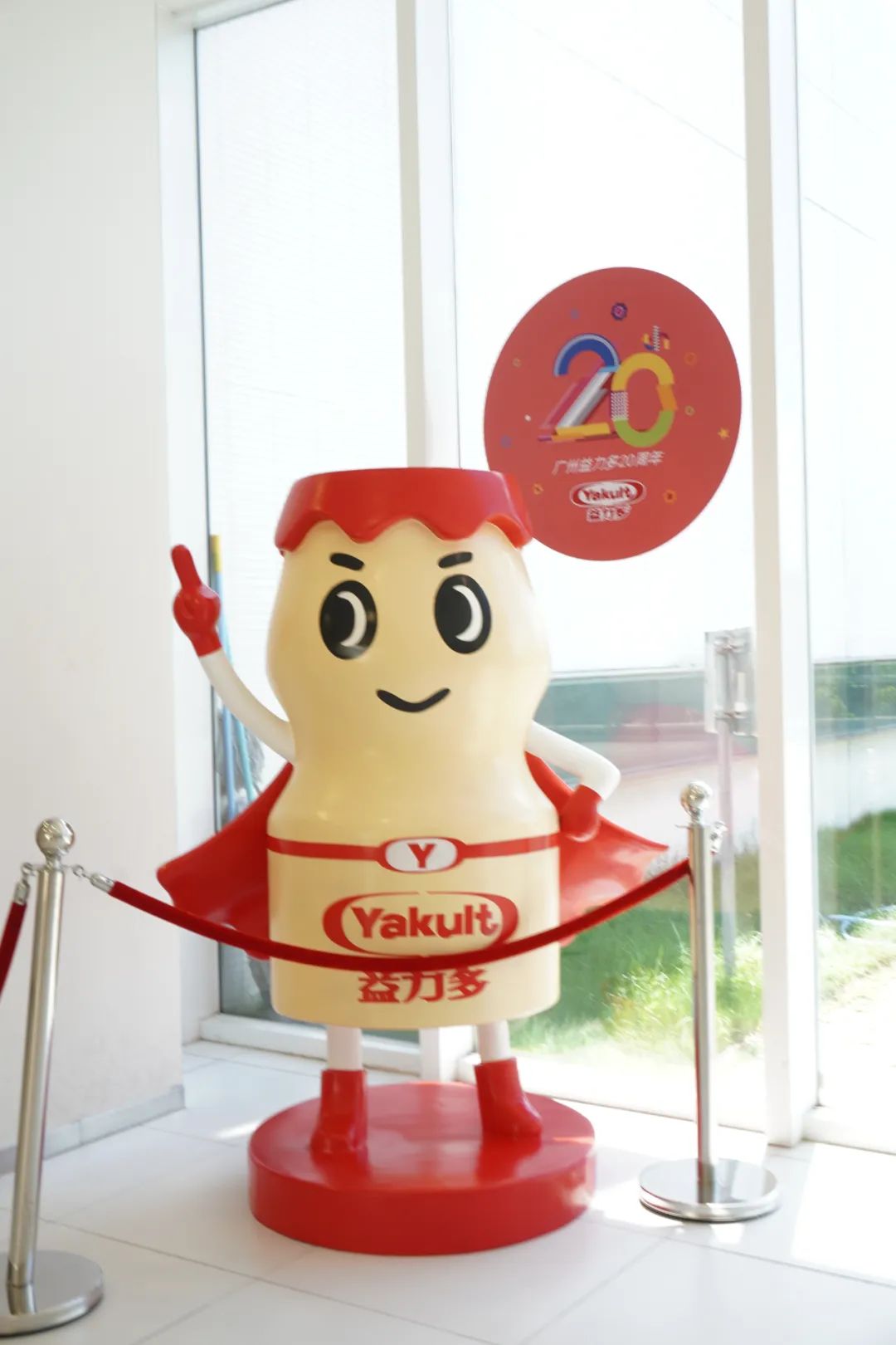 一进入工厂,一个巨型“益力多”小超人便出现在眼前。工厂前厅是参观打卡点之一。这里可以看到益力多在不同国家和地区的分布版图,还展陈“世界益力多小姐”的独特装束。