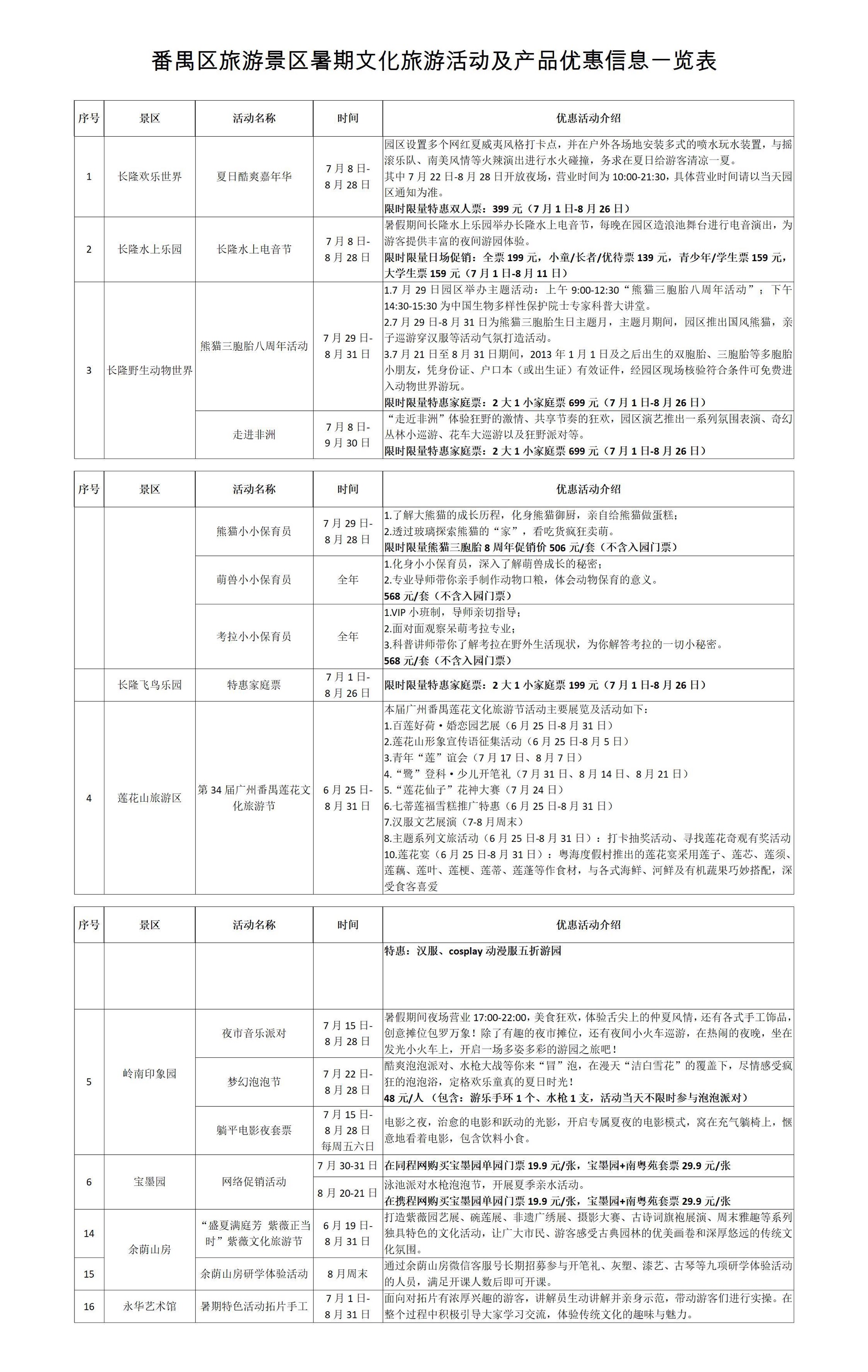 番禺区多家旅游景区推出暑期优惠: