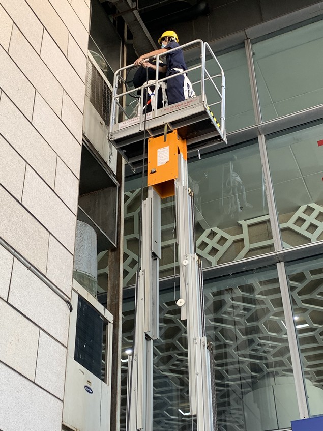 据了解,广州南站东南、西南贵宾厅还各有4台风冷热泵多联机,4台多联机从上至下安装在2、3号票厅门口,最上面的多联机安装在8米高的位置。每次换季,中央空调停机后,需要4人合作使用升降车对8台多联机进行检查、保养与维修。