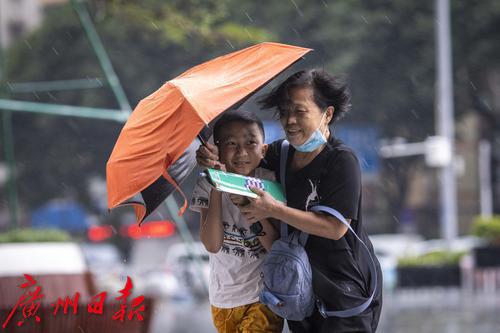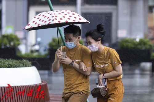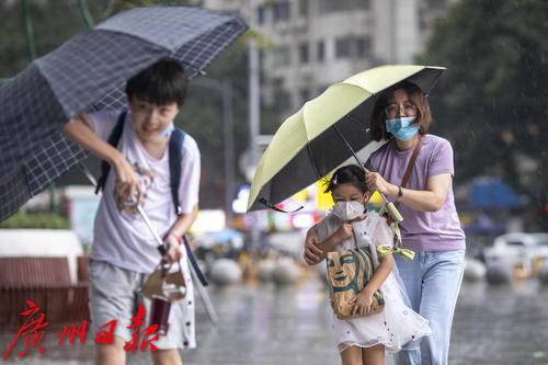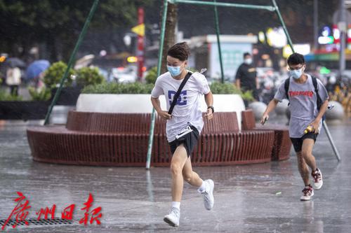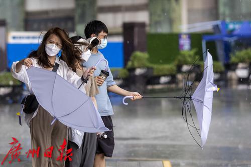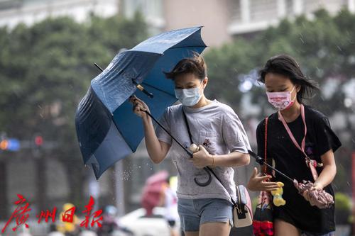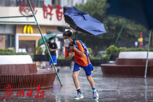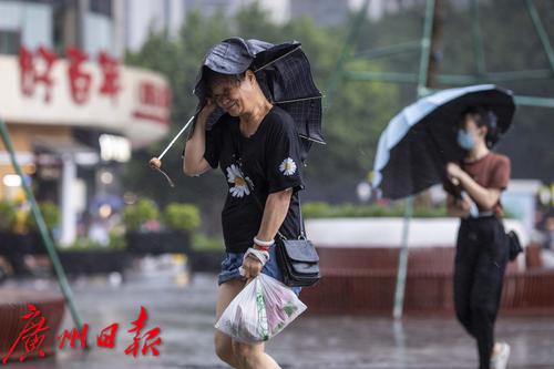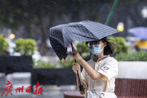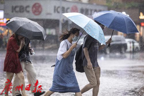 2022年7月30日,广州市气象台30日13时42分发布暴雨黄色和雷雨大风黄色预警信号。下午2时许,海珠区上空雷声不断,继而下起大暴雨,伴有狂风。电闪雷鸣、狂风大作,记者在海珠区江南大道看到,路上行人在暴雨中很是狼狈,有些市民趁着雨势减弱寻找“瓦遮头”避雨,由于要对抗大风,不少人只能斜着身体顶着大风走,然而有些市民手中的伞还是被突如其来的大风吹反。