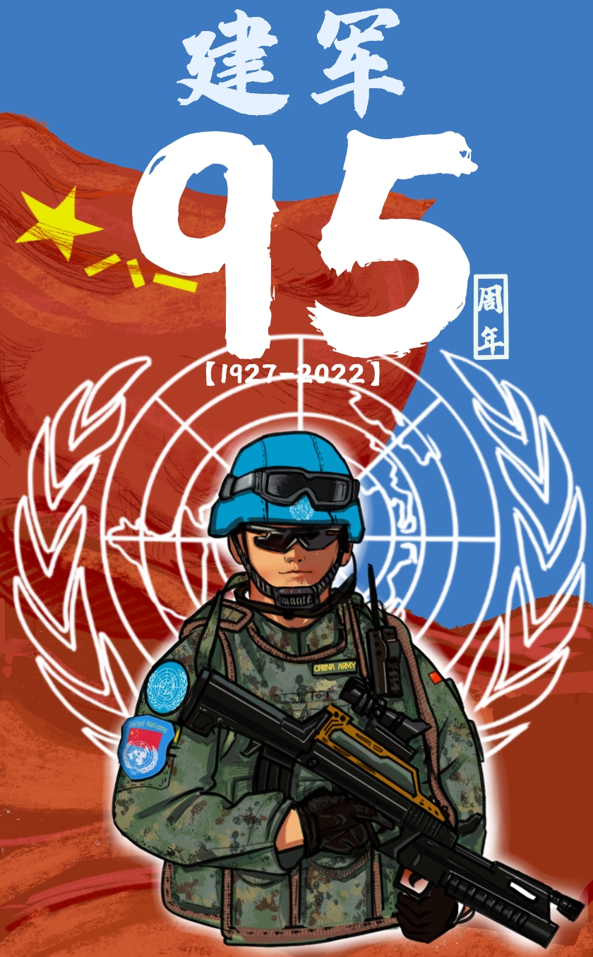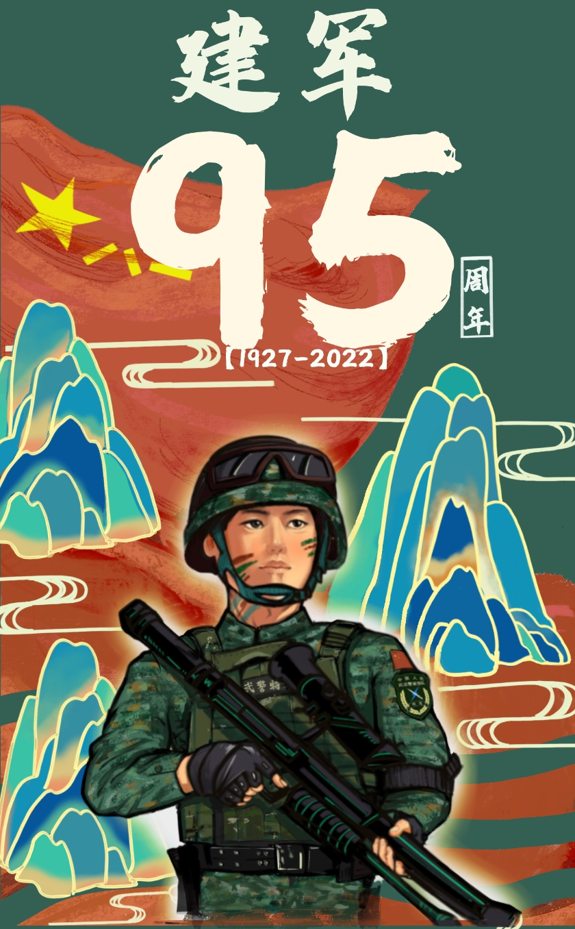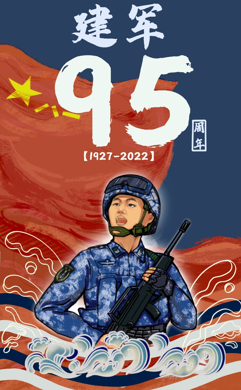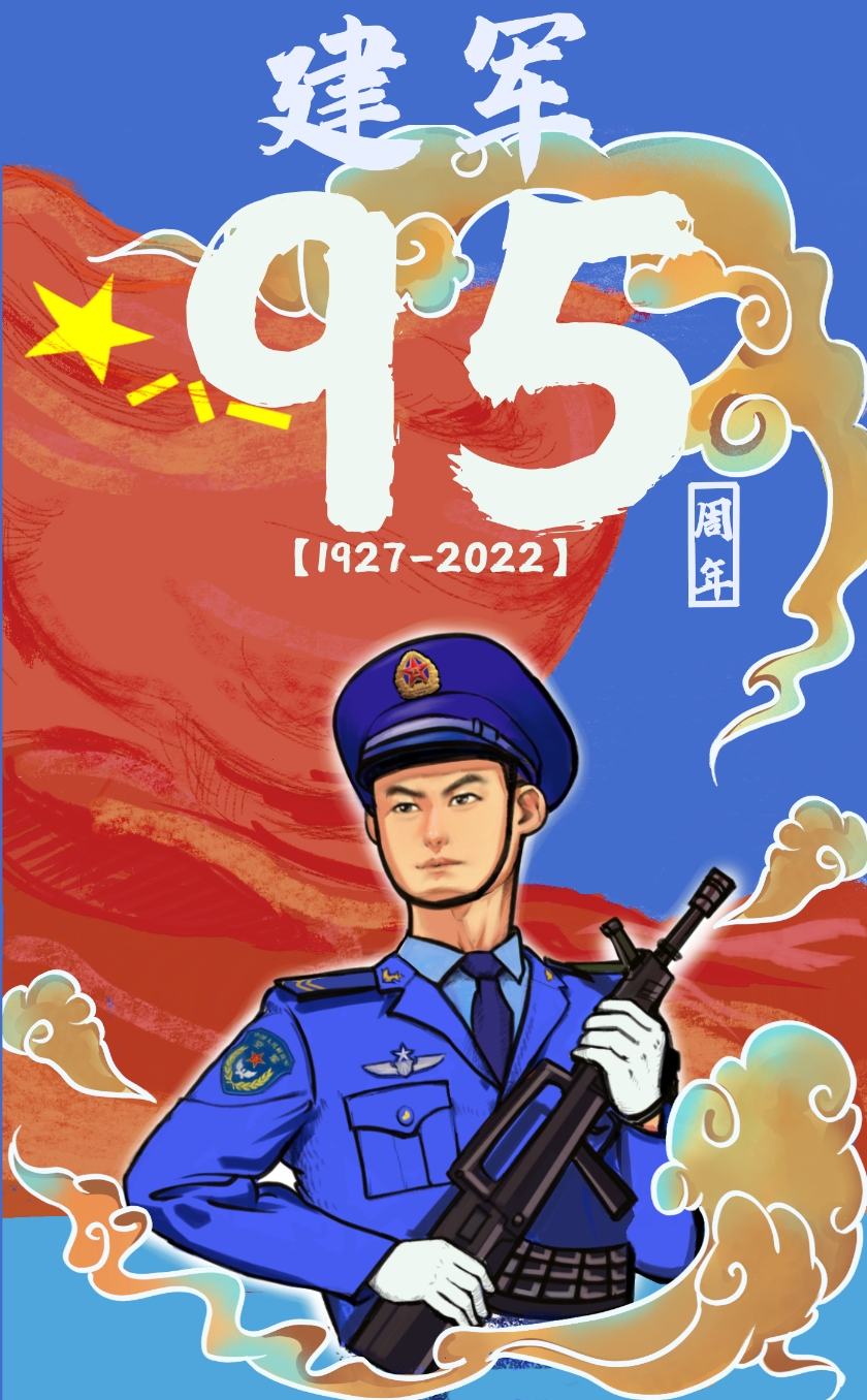 为了让这个“八一”更有意义,他着手创作了一组手绘漫画海报。“从南昌起义建军以来,我军‘从无到有’‘从弱到强’。这组海报是结合我对此的感受和了解创作出来的。”杨万泉说,“我想把兵种的漫画形象和一些优秀的中华传统纹样结合起来,向建军95周年致敬。”