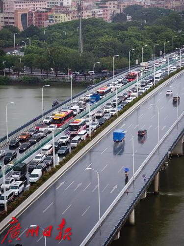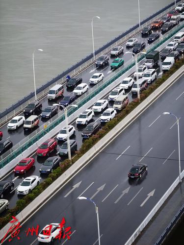 2022年7月30日下午2时,一场大雨造成番禺大石大桥南施工路段水浸,双方向塞车长达两公里。