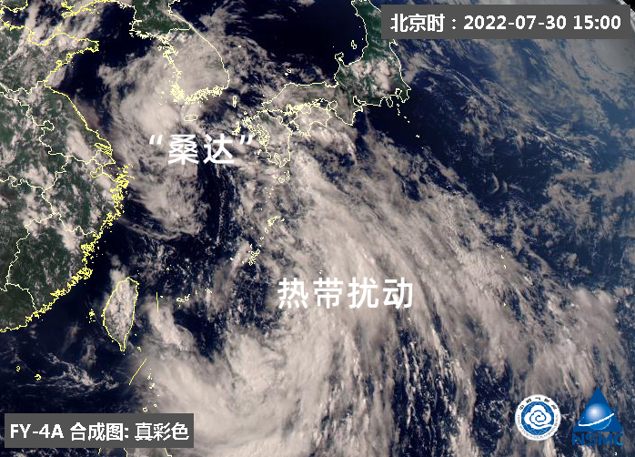 △台风“桑达”和其南侧的热带扰动。(图 国家卫星气象中心)