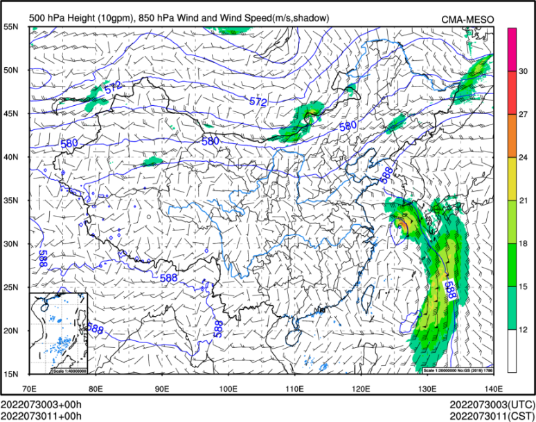 △副热带高压(588线)总想与台风争夺位置。(图 中央气象台)