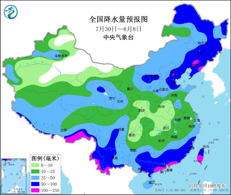 △7月30日—8月8日全国降水量预报图