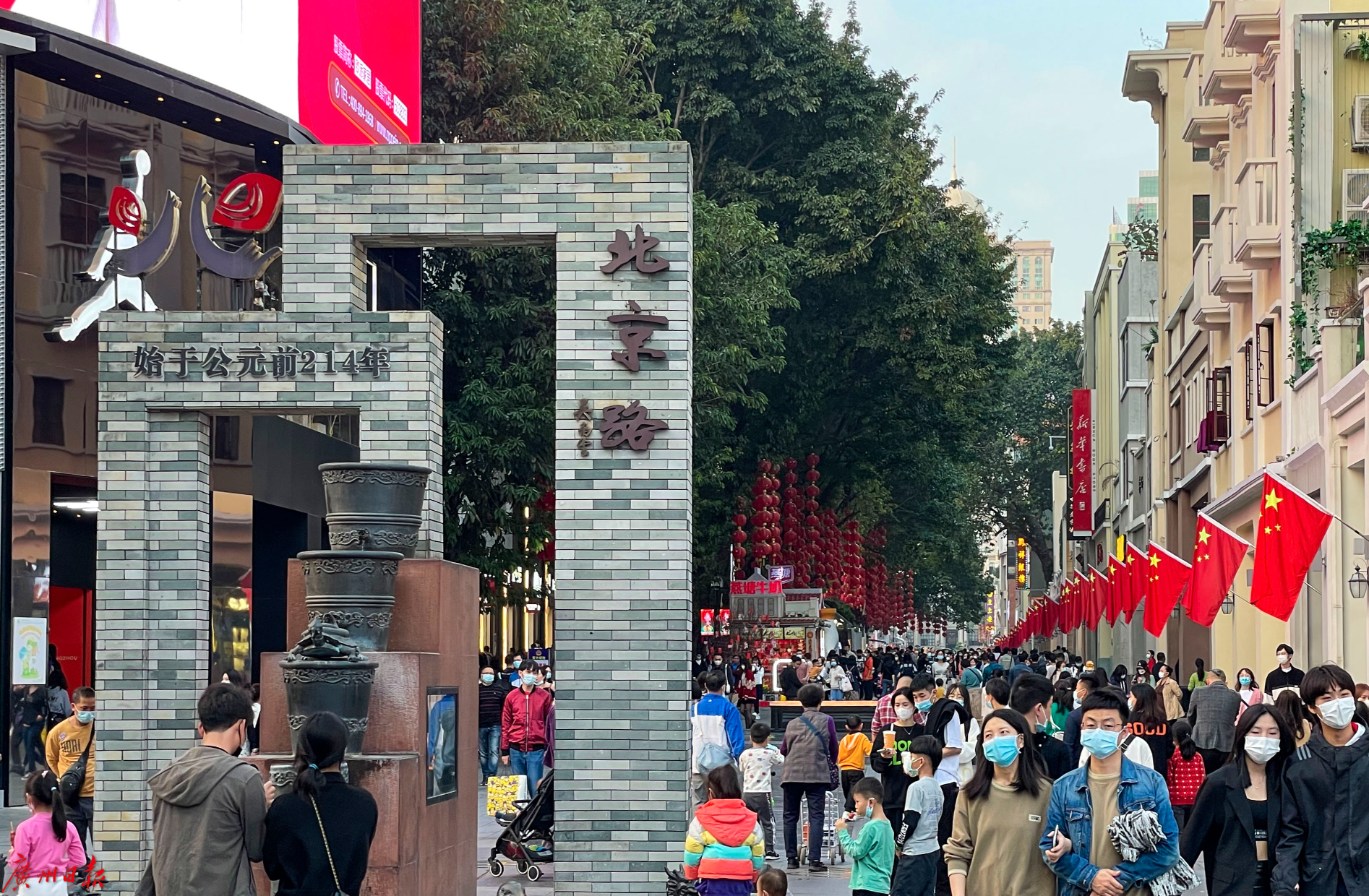 站在越秀区的北京路步行街,低头可见距离地表3米以下11层路面上的五朝商贸足迹;抬头则是如织的游人、琳琅满目的商店。从古至今,北京路一直是广州最繁华的地方之一。