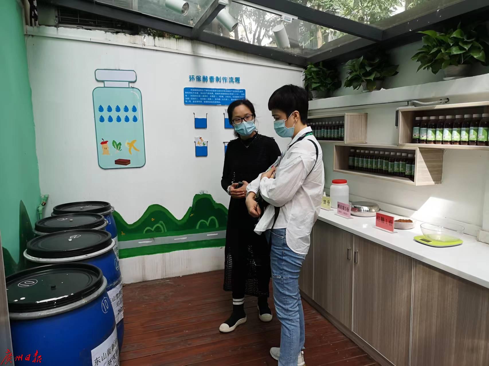 红色氛围浓厚,绿色文化也盛行。位于新河浦社区内的东湖北大院是广州最先开展生活垃圾分类试点工作的小区之一,2020年,该大院24号建起了第一个星级投放点。紧跟广州市推行垃圾分类的步伐,张艳带领着社区居民持续推进生活垃圾分类工作。除此,社区内还建起了生态文明小苑,定期开展环保酵素制作、宣讲等绿色环保活动。