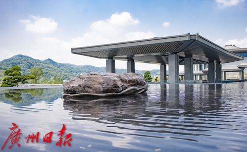 站在主馆七楼的观光平台上眺望,眼前的“大山大水”秀美风光一览无余。为了让“沁”字所代表的南粤特色和地域精神得以展现,设计团队通过建筑采取了多种表达,借鉴岭南园林手法,让建筑人文的气息与岭南山水环境高度契合。
