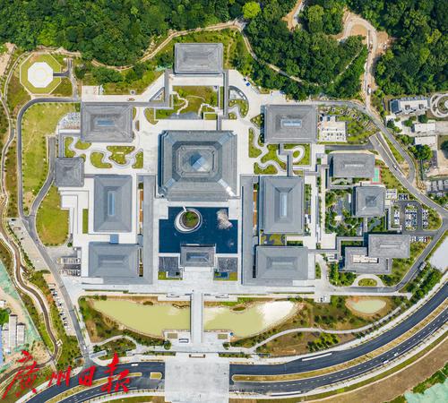 中国国家版本馆“一总三分”,分别为中央总馆文瀚阁和西安分馆文济阁、杭州分馆文润阁、广州分馆文沁阁。广州国家版本馆面朝流溪河,背靠凤凰山,建筑群以“中华典藏、岭南山水、时代新韵、文明灯塔”为总体构思,整体布局依山就势,层次递进,传承中华传统礼轴形制,四周环绕人文与自然交融的岭南园林,打造传世经典的中华文化殿堂形象。