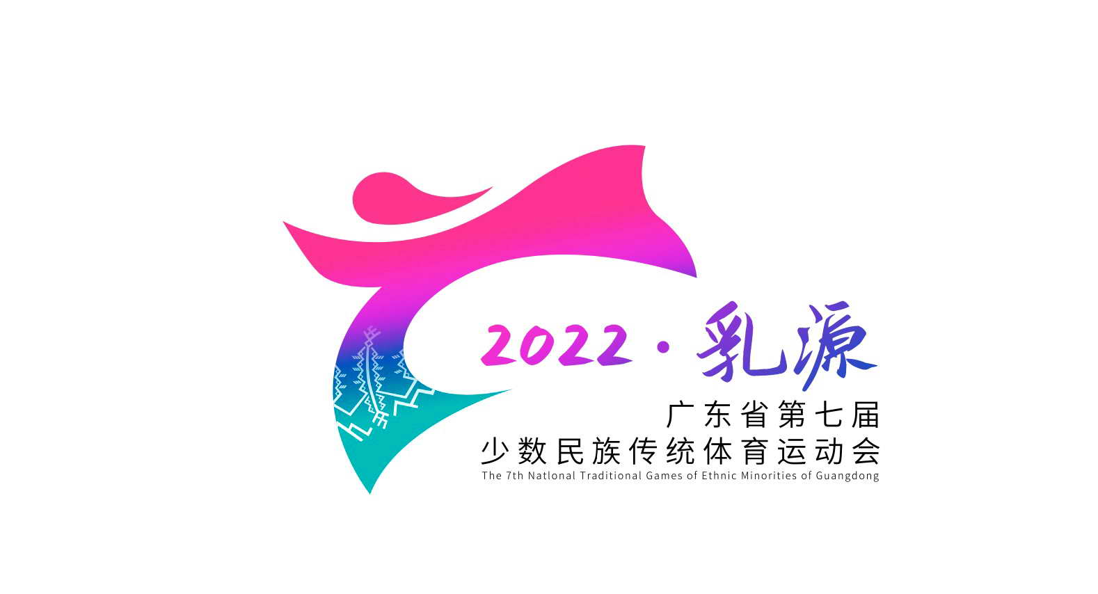 会 徽:广东省第七届少数民族传统体育运动会会徽由两部分组成,左边部分是以优美的瑶族舞姿造型结合“第七届”中的“七(7)”字进行设计,流动的线条形似飘逸的裙摆,缀以乳源过山瑶特有的瑶绣服饰元素和瑶绣纹样,整体展现灵动雀跃之感,又寓有热情好客的瑶族人民喜迎民族运动会之意。右边是彩色字体书写的“2022·乳源”和“广东省第七届少数民族传统体育运动会”的黑体字样,将运动精神与民族特色文化完美结合,同时也表明了运动会的时间和举办地。会徽整体造型线条灵动、色彩绚丽多彩,标识整体简洁、明快,具有动感,体现广东省第七届少数民族传统体育运动会“团结、拼搏、和谐、多彩”的宗旨。