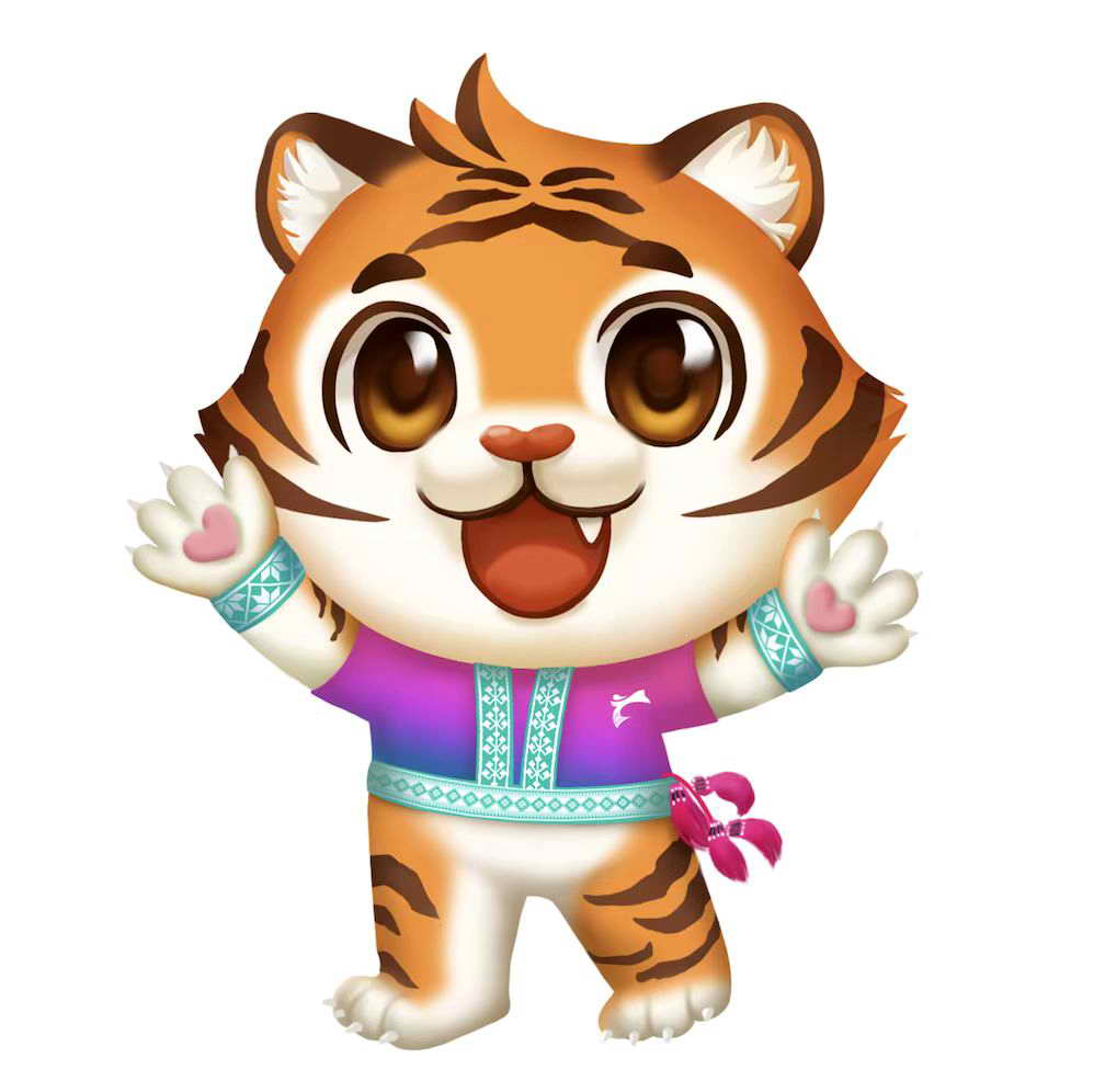 吉祥物“抱抱虎”是瑶族与华南虎的融合,抱抱的寓意,既展现出中国文化底蕴,又展现了民族特色、民族团结进步,运动和活力的精神品质,各民族像石榴籽一样紧紧抱在一起。