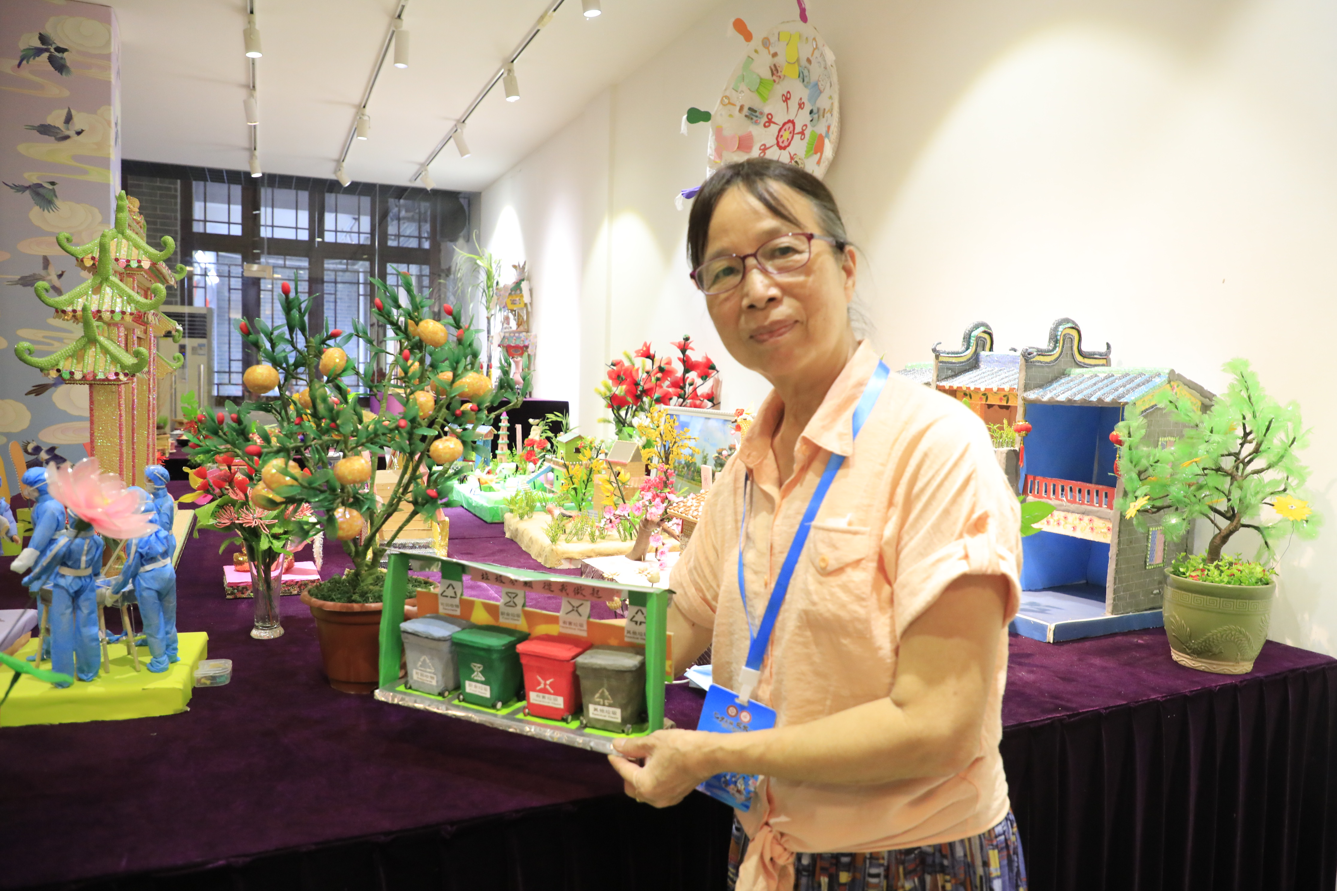 抗疫主题作品“最美的逆行者”,用蓝色无纺布做了医护人员的防护服,用口罩做防护帽,致敬疫情防控中的最美逆行者。亚运会主题通过“公仔”表现运动员的形象,荔枝湾主题则通过卖艇仔粥的场景重现岭南水韵,还有载人航天主题的火箭,吸引了不少年轻人的目光。“我一直尝试创新,能制作出年轻人讲得出来的作品,让我很有成就感。”潘慧君说道。