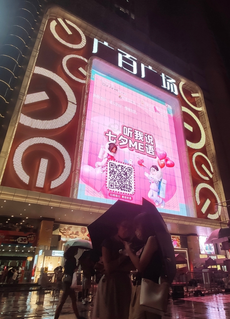 在另一边厢天河路商圈,广州友谊正佳店则成为情侣七夕的约会好去处,这里不惜重本专门搭建了一个实体“七夕心愿桥”,吸引情侣们前来许愿和拍照,成为城中最热闹的过节胜地之一。