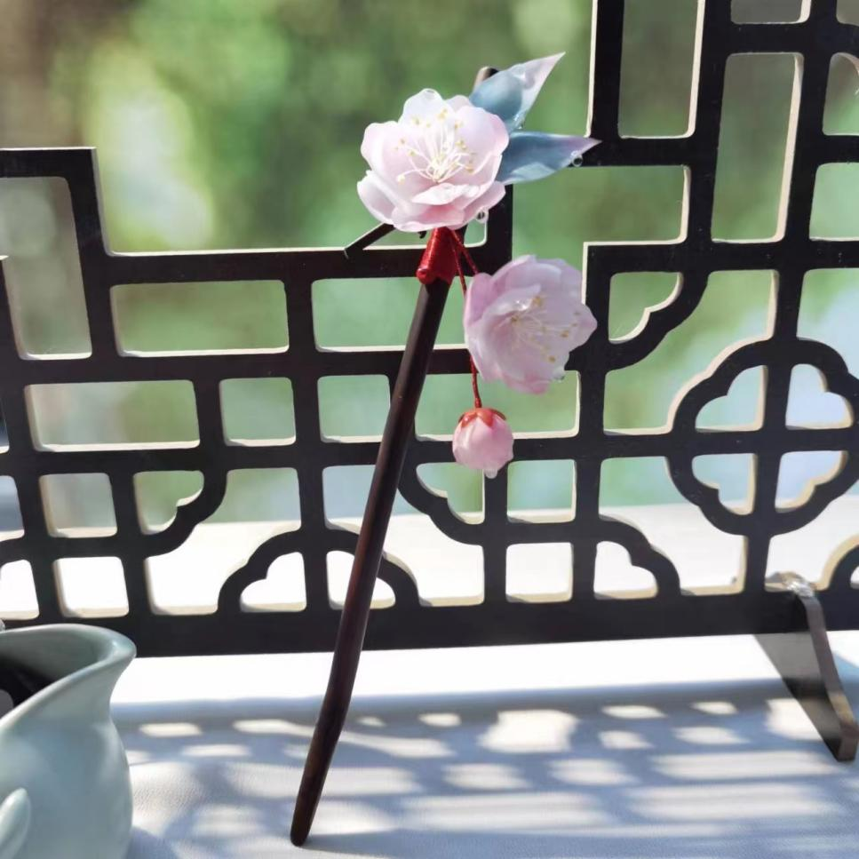活动的最后环节还有非遗簪钗手工DIY体验活动,活动主办方根据《人间情诗》中的诗词所描述的花卉如桃花、荷花、梨花、海棠、蔷薇等开发出古风手工发簪文创产品,市民在现场可以体验手工DIY非遗簪钗。