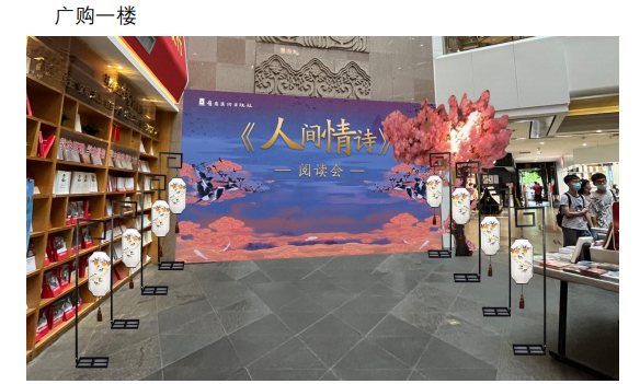 记者获悉,为了配合此次诗词雅集活动的开展,《人间情诗》团队提前半个月对广州购书中心大堂及楠枫书院临街的景观阳台进行了一番精心的设计与布置。
