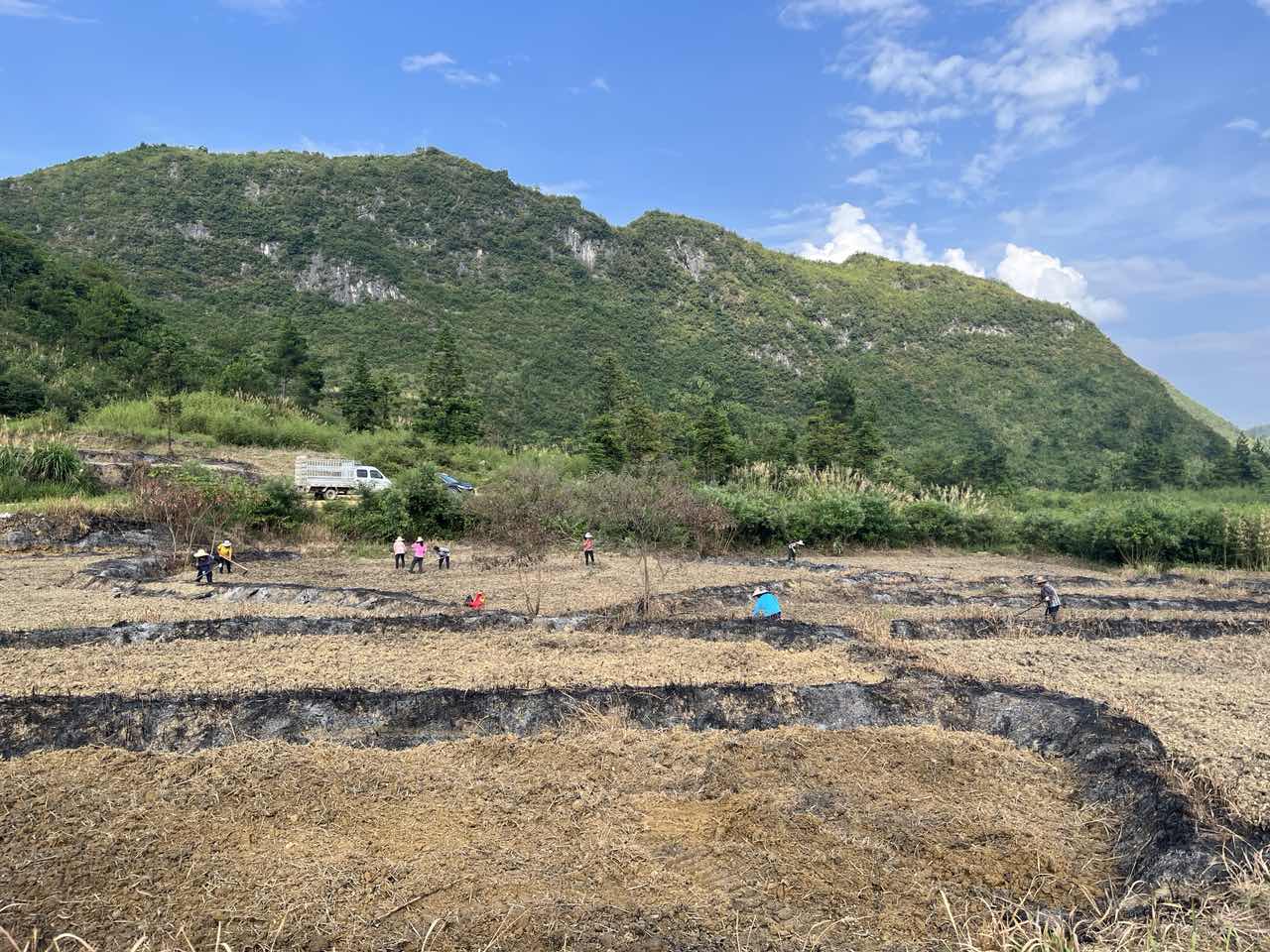“脚下这片荒地是我们上一代人历经辛苦开垦出来的,当年种稻谷、玉米、红薯、芋头等,让我们能吃饱饭,我对这片土地有感恩之情,今年通过土地流转到我手中开荒种植,我感到很自豪!”负责人黄跃华说道。