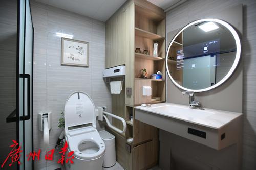 图为智慧病房内的智能马桶和可一键升降的洗手台