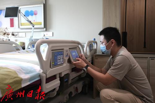 图为工作人员演示智能病床