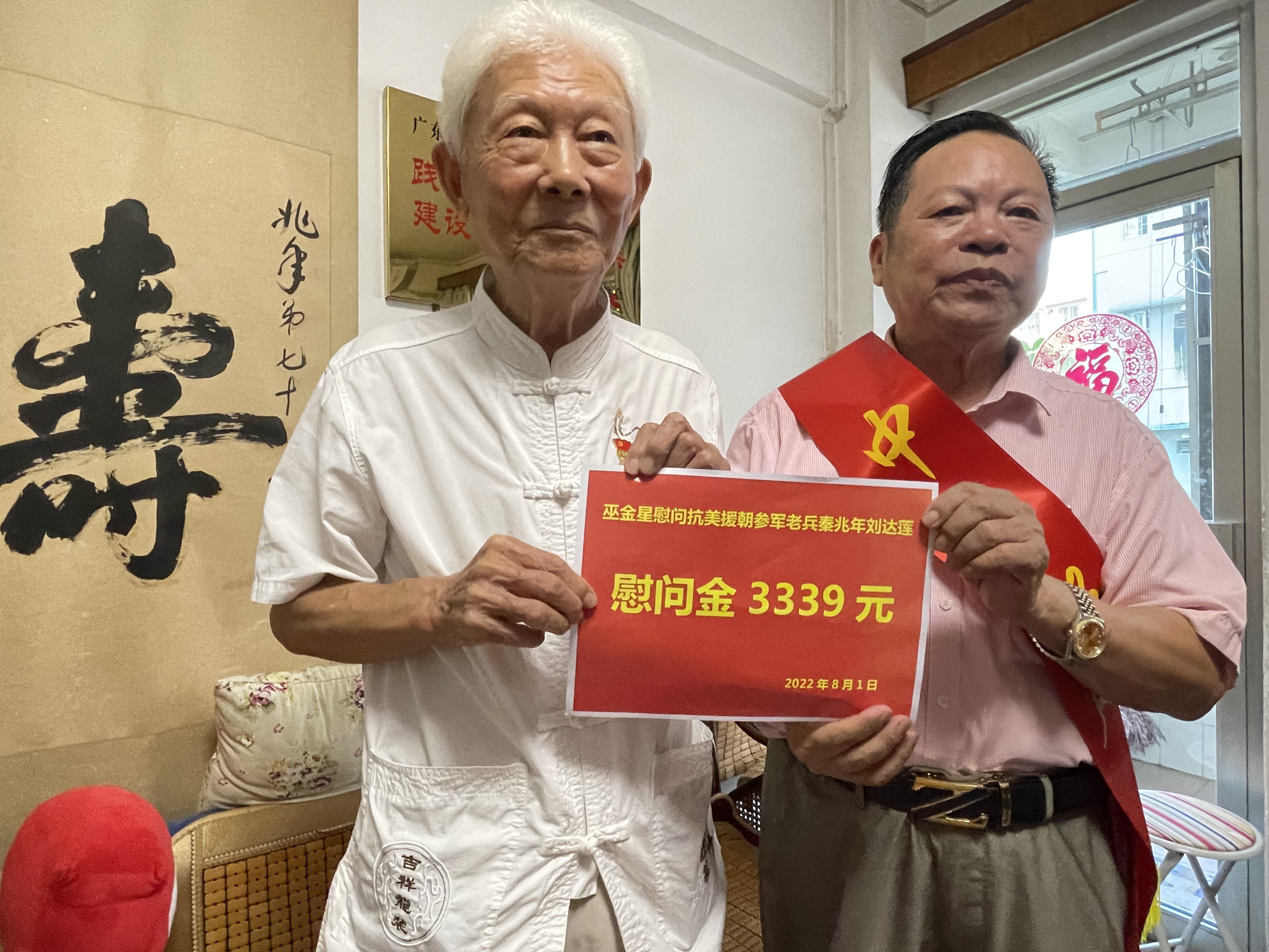 为庆祝八一建军节,8月1日,”中国好人“公益慰问团队开展了“情暖老兵”活动,慰问辖区抗战老兵,送去慰问品并致以节日问候和祝愿。当天,中国好人公益慰问团队在”中国好人”、 中国诚信楷模人物、中国管理科学院学术智库专家、广州市乐善关爱老人协会永久荣誉会长巫金星带领下,前往华南师范大学,看望89岁的抗美援朝老兵秦兆年、刘达莲夫妻。”中国好人“林义平、马雪萍、何淑娟、尚丙辉、李桂泉,”广东好人“陈金莲、王凤丽,“广州好人”肖金,“天河好人”彭大玉、覃朝晖等一同参与慰问。