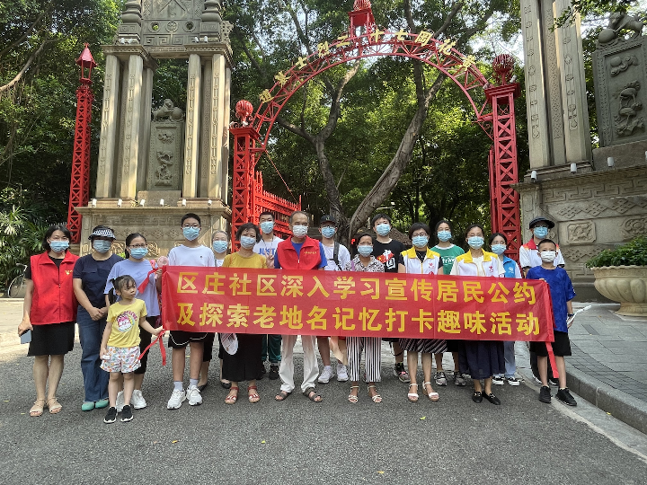7月29日上午,区庄社区党委联合黄花岗街文化站、街社工服务站、街未成年人保护工作站在黄花岗公园内开展了日新“粤”异——区庄社区深入学习宣传居民公约及探索老地名记忆打卡活动,据悉,此次活动共吸引了37人次居民参与。