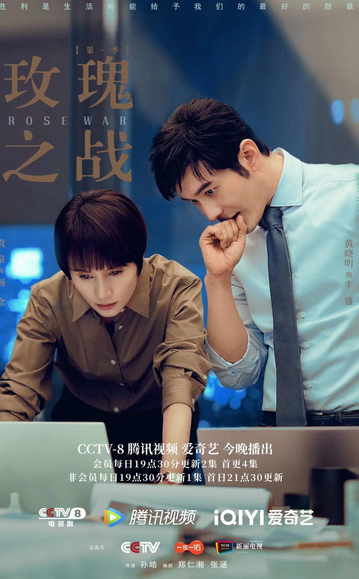 由中央电视台、一佐一佑影视江苏有限公司、新丽电视文化投资有限公司出品,郑仁湘、张涵任编剧,孙皓执导,袁泉、黄晓明、俞飞鸿领衔主演,王姬特别主演的都市剧《玫瑰之战》今日开播,并发布一组人物关系海报和一支终极预告。该剧将于今晚(8月8日起)登陆CCTV-8黄金强档,并在腾讯视频和爱奇艺播出。