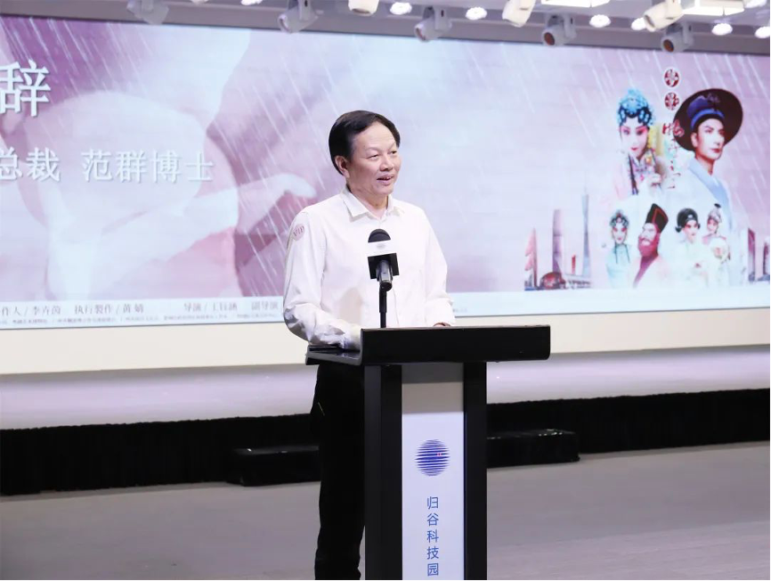 广州归谷科技园有限公司总裁、广州海创研究院执行院长范群在致辞中表示:归谷科技园将与粤港澳大湾区青年戏剧协会携手,充分发挥各自优势,共同打造科技与戏剧传承融合交流孵化平台,汇聚大湾区青年戏剧人才,通过守正创新的方式将传统文化与创新科技相融合。