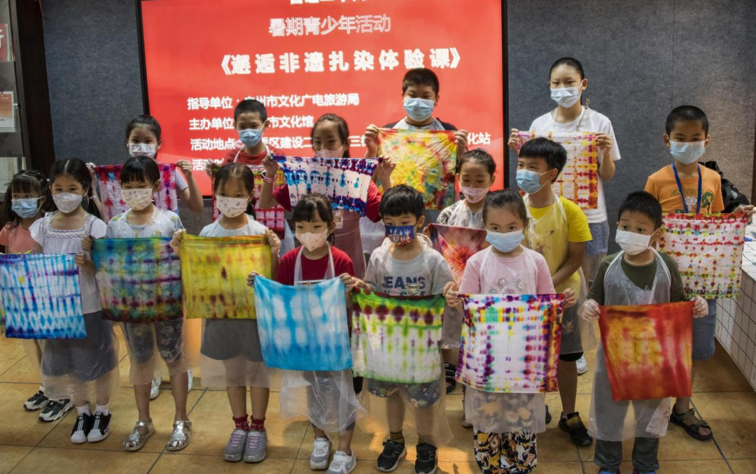 为了丰富辖内青少年的暑期生活,让青少年体验传统技艺、感受非遗文化魅力,8月5日上午,由广州市文化馆、越秀区文化馆以及建设街共同举办的公益体验课程在建设街文化站圆满落幕,来自建设街辖内的多名青少年儿童通过动手制作扎染手帕,了解和接触了非遗扎染工艺。