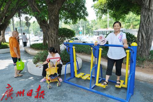 负责同泰路机电幼儿园至南武小学路段的保洁工作已有三年时间,“城市美容师”贺春秀见证了榕树头口袋公园地块的变化。一个高温天的上午,记者来到白云区同泰路与云泰路交界处的榕树头口袋公园,七八棵榕树繁茂葱郁,为烈日下的大地撑起一方清凉,哑光面白色泰科石花钵清雅别致;蒲团坐凳、健身器材、党建文化主题元素的景观小品点缀其间。举目远眺,马路尽头,云山拢翠,这个面积仅有296平方米村口小公园,轻易就把美景装进“口袋”。