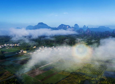 据了解,“奇光”是物理学中一种“日晕”现象,当阳光照在云雾表面,经过衍射和漫反射作用形成紫蓝光的自然奇观。丹霞山的“奇光”现象一般会出现在早晨或者雨后时刻。