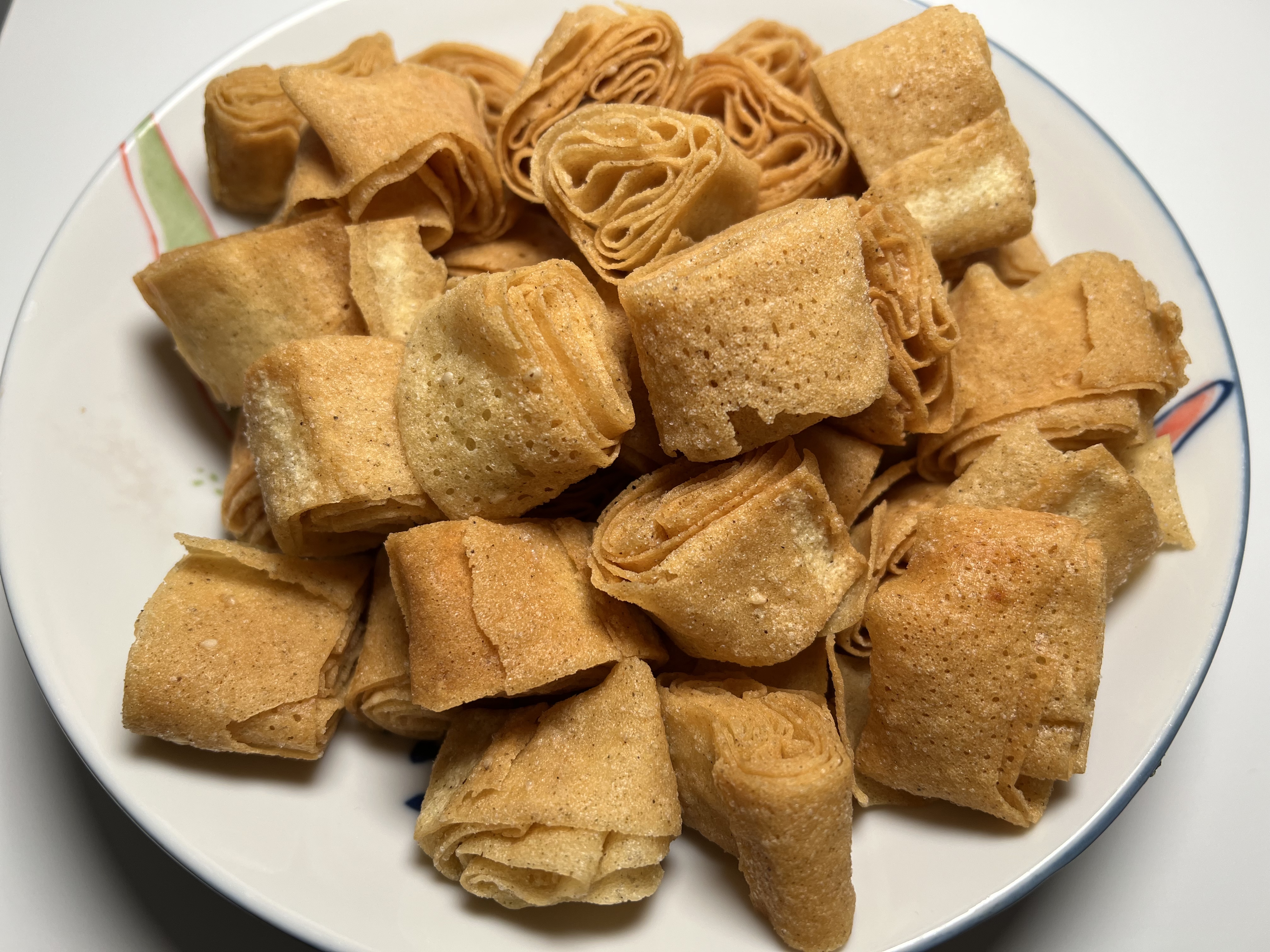 “说起炸饹馇,那可是老北京的经典年货,因为吃起来咯吱香脆,才得了这个形象的名字。”朱茂锦说,“以前,北京人每逢过年必定要做一些炸货美食,用于招待来访的亲友,小孩子最馋这道小吃,只有过年才能吃上。现在,很多北京小吃店日常都有卖,大家生活水平提高了,物质丰富得天天都像过年。”饹馇一般是用绿豆面揉成薄皮,卷上胡萝卜丝、香菜,切成小段再炸。如今,现代生活带来了无限便利,很多超市都能买到炸饹馇的半成品,拿回家后只需要解冻切段,就可以下油锅里炸成酥脆喷香的小吃。